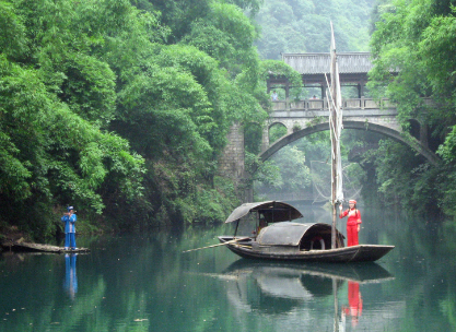 抵赤壁,游覽赤壁古戰場、周瑜像、拜風臺、望江亭、翼江亭、摩崖石刻、三國陳列館。在赤壁山小喬茶藝館進餐【赤壁古風---鳳雛庵--千年古銀杏樹--閱書亭--拜風臺--小喬茶藝館--射箭臺--赤壁大戰陳列館---周瑜石像----摩崖石刻---三國雕塑園】晚船經過武漢港下船。